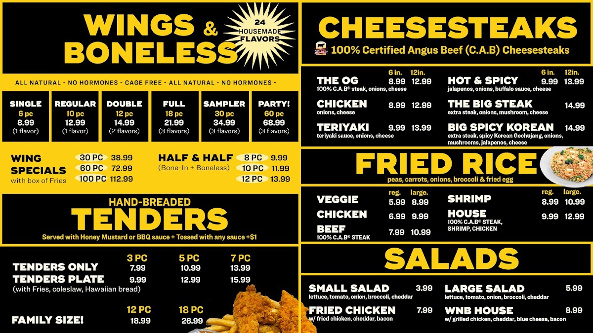 Customers rave about their buffalo boneless wings, which are consistently praised for their robust flavors. With a diverse selection of wing sauces, including favorites like Carolina and Honey Garlic, there's a flavor for everyone. Additionally, the Philly cheese steak garners attention for its delightful customization options, while the burgers and fried rice continue to impress.